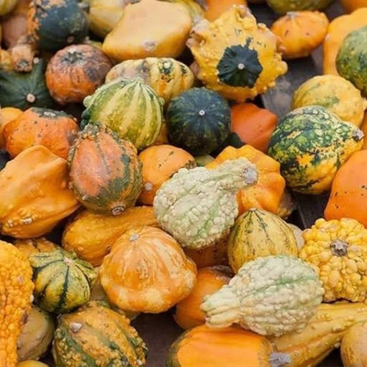 کدو حلوایی زینتی، که با نام هایی مانند «کدو زینتی شهر آفتاب» نیز شناخته می شود، یکی از محبوب ترین انواع کدوهای زینتی در ایران و جهان است که برای تزیین باغچه، بالکن، سفره ی پاییز و جشن های فصلی کاربرد بسیاری دارد. این نوع کدو به دلیل رنگ بندی جذاب، فرم های منحصربه فرد و نگهداری آسان، میان علاقه مندان به گل و گیاه، طراحان دکوراسیون و حتی مدارس بسیار پرطرفدار است. پرورش این گیاه شاداب، نه تنها زیبایی محیط را دوچندان می کند، بلکه تجربه ای دلنشین از باغبانی و مشاهده رشد میوه های فانتزی را به ارمغان می آورد. کدو حلوایی زینتی اغلب برای دکور و کاردستی انتخاب می شود و به سبب اندازه کوچک، تنوع شکل و دوام بالا برای مدت طولانی تازگی و ظاهر خود را حفظ می کند. این محصول نماد فصل پاییز و جشن های برداشت در بسیاری از فرهنگ هاست و در خانه ها، رستوران ها و مراکز آموزشی برای طراحی میز، تزئین پنجره ها و حتی درست کردن عروسک و اشیا دستی کاربرد دارد. البته برخی واریته ها قابل مصرف خوراکی نیز هستند. مشخصات ظاهری کدو حلوایی زینتی (کدو زینتی شهر آفتاب) کدو حلوایی زینتی «شهر آفتاب» به طور معمول میوه هایی کوچک تا متوسط، با فرم های بسیار متنوع تولید می کند؛ از گرد و تخم مرغی گرفته تا کشیده یا حتی شیاردار. این میوه ها در اندازه های 5 تا 15 سانتی متر یافت می شوند و برخی از آن ها سطحی صاف، برخی راه راه و برخی هم برجستگی یا شیار دارند. ویژگی بارز این کدوها، رنگ آمیزی شاد و ترکیبی شان است؛ رنگ های زرد، نارنجی، سبز، سفید و کرم به صورت خالص یا رگه دار و ابلق دیده می شوند. پوست این کدوها نسبتاً سفت و براق است و فرم های عجیب و غریب آن ها مخصوصاً برای جلب توجه و تزیین عالی هستند. بخشی از کدوهای زینتی شهر آفتاب پوستی نسبتاً ضخیم داشته و همین باعث می شود دوام بیشتری نسبت به کدوهای خوراکی داشته باشند. ضخامت گوشت میوه زیاد نیست و فضای مرکزی اغلب با تخم های کوچک پر شده است. جذابیت بصری و تنوع فرم باعث شده این نوع کدو برای کودکان و هنرمندان هم جذاب باشد.