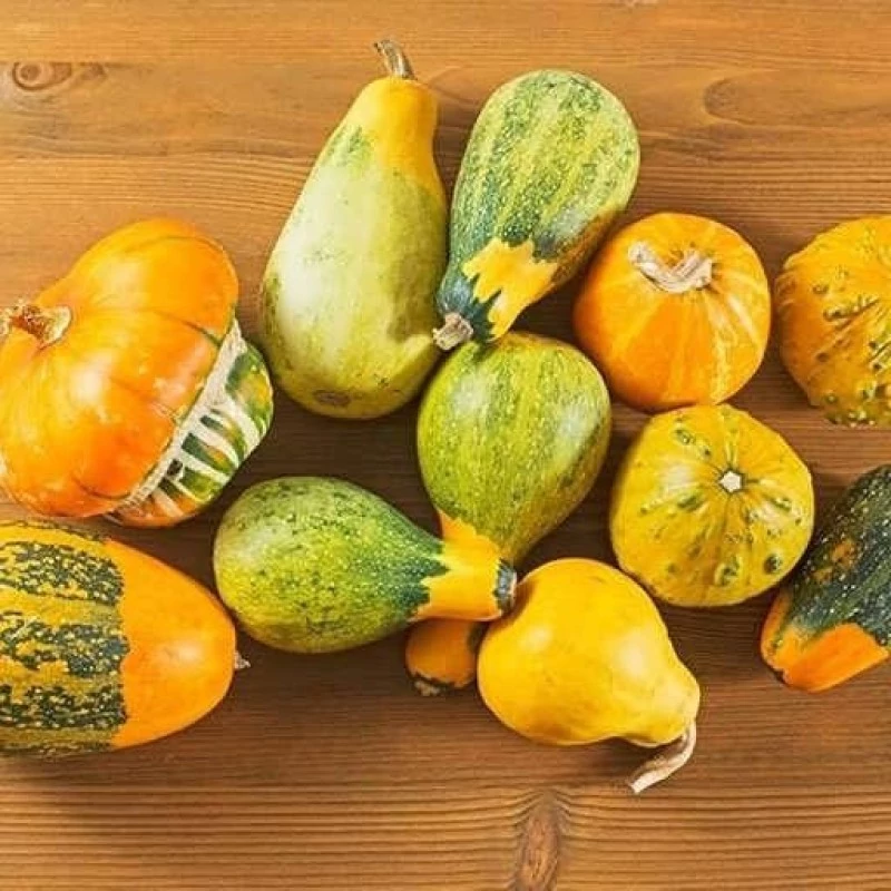 کدو حلوایی زینتی، که با نام هایی مانند «کدو زینتی شهر آفتاب» نیز شناخته می شود، یکی از محبوب ترین انواع کدوهای زینتی در ایران و جهان است که برای تزیین باغچه، بالکن، سفره ی پاییز و جشن های فصلی کاربرد بسیاری دارد. این نوع کدو به دلیل رنگ بندی جذاب، فرم های منحصربه فرد و نگهداری آسان، میان علاقه مندان به گل و گیاه، طراحان دکوراسیون و حتی مدارس بسیار پرطرفدار است. پرورش این گیاه شاداب، نه تنها زیبایی محیط را دوچندان می کند، بلکه تجربه ای دلنشین از باغبانی و مشاهده رشد میوه های فانتزی را به ارمغان می آورد. کدو حلوایی زینتی اغلب برای دکور و کاردستی انتخاب می شود و به سبب اندازه کوچک، تنوع شکل و دوام بالا برای مدت طولانی تازگی و ظاهر خود را حفظ می کند. این محصول نماد فصل پاییز و جشن های برداشت در بسیاری از فرهنگ هاست و در خانه ها، رستوران ها و مراکز آموزشی برای طراحی میز، تزئین پنجره ها و حتی درست کردن عروسک و اشیا دستی کاربرد دارد. البته برخی واریته ها قابل مصرف خوراکی نیز هستند. مشخصات ظاهری کدو حلوایی زینتی (کدو زینتی شهر آفتاب) کدو حلوایی زینتی «شهر آفتاب» به طور معمول میوه هایی کوچک تا متوسط، با فرم های بسیار متنوع تولید می کند؛ از گرد و تخم مرغی گرفته تا کشیده یا حتی شیاردار. این میوه ها در اندازه های 5 تا 15 سانتی متر یافت می شوند و برخی از آن ها سطحی صاف، برخی راه راه و برخی هم برجستگی یا شیار دارند. ویژگی بارز این کدوها، رنگ آمیزی شاد و ترکیبی شان است؛ رنگ های زرد، نارنجی، سبز، سفید و کرم به صورت خالص یا رگه دار و ابلق دیده می شوند. پوست این کدوها نسبتاً سفت و براق است و فرم های عجیب و غریب آن ها مخصوصاً برای جلب توجه و تزیین عالی هستند. بخشی از کدوهای زینتی شهر آفتاب پوستی نسبتاً ضخیم داشته و همین باعث می شود دوام بیشتری نسبت به کدوهای خوراکی داشته باشند. ضخامت گوشت میوه زیاد نیست و فضای مرکزی اغلب با تخم های کوچک پر شده است. جذابیت بصری و تنوع فرم باعث شده این نوع کدو برای کودکان و هنرمندان هم جذاب باشد.