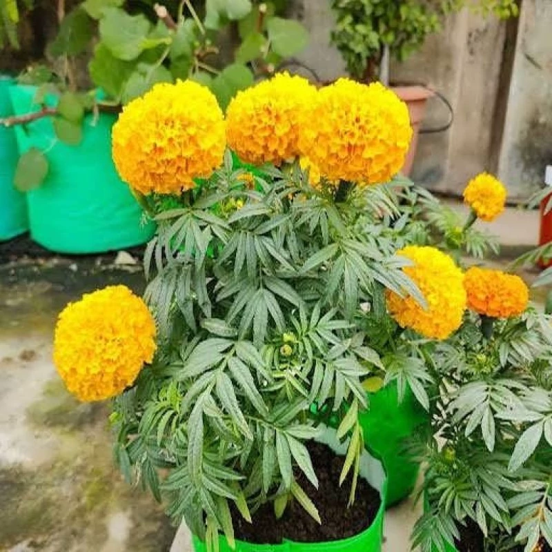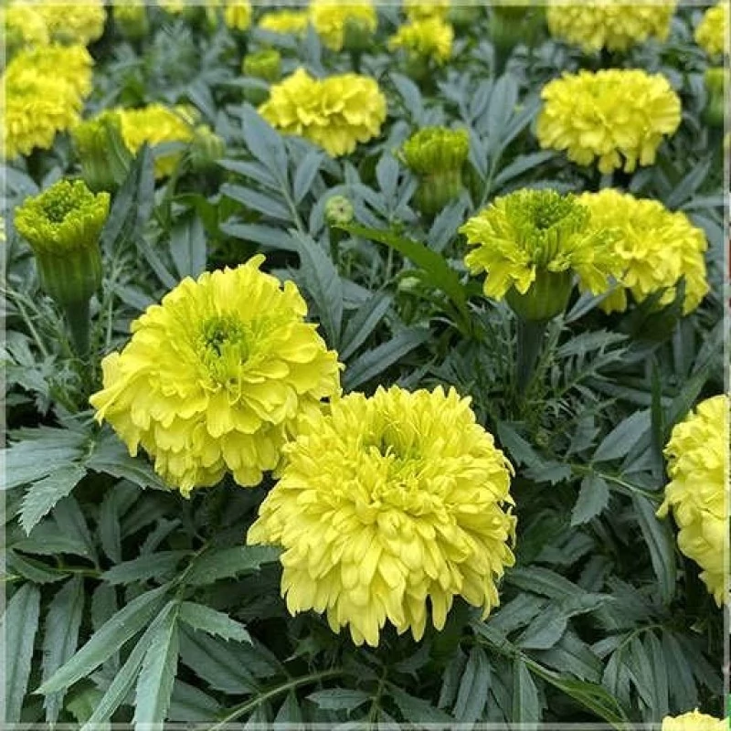 گل جعفری پاکوتاه گلریز پرگل (مینیاتوری) زرد از محبوب ترین واریته های جعفری فرانسوی است. این رقم به ویژه برای استفاده در مرزبندی باغچه ها، فضای سبز شهری، فلاورباکس ها، گلدان های بالکنی و حتی طرح پردازی در باغبانی مدرن اهمیت بالایی دارد. این گونه، با قامتی بسیار کوتاه، گلدهی بی وقفه و تعداد خارق العاده گل، نه تنها زیبایی چشمگیر، بلکه تطابقی عالی با شرایط متغیر محیطی نشان می دهد. از جمله ویژگی های برجسته آن می توان به تحمل گرما، مقاومت نسبی به آفات و بیماری ها و قابلیت پرورش آسان حتی برای افراد بی تجربه اشاره کرد. مشخصات ظاهری گل جعفری پاکوتاه گلریز پرگل (مینیاتوری) زرد جعفری مینیاتوری زرد دارای رشد جمع وجور و متراکم است. ارتفاع معمول این گیاه بین 15 تا 25 سانتی متر و گستردگی هر بوته به حدود 20 تا 25 سانتی متر می رسد. بوته ها شکلی نیم کروی و یکنواخت دارند، به طوری که تمام شاخ و برگ و گل ها در یک حجم کاملا مرتب و تقریبا افقی یا گنبدی قرار می گیرند. شاخه ها بسیار کوتاه و منشعب هستند و به ندرت شاخه ای از فرم توپ مانند بوته بیرون می زند، که همین موجب ایستایی مناسب در برابر وزش باد و بارش می شود. برگ ها سرخسی شکل، باریک، عمیقاً بریدگی دار و بافتی لطیف دارند. رنگ آن ها سبز متوسط تا تیره است و سطح برگ ها کمی براق و بی پرز است. آرایش متراکم برگ ها، پس زمینه ای مناسب و زیبا برای جلوه نمایان گل های زرد فراهم می کند. برگ ها با لمس عطری ملایم و خاص از خود منتشر می کنند که مشخصه همه جعفری هاست. گل جعفری مینیاتوری زرد به دلیل گلدهی حجیم و پیوسته شهرت دارد. گل ها به طور چشمگیری کوچک (قطر هر گل حدود 2 تا 3.5 سانتی متر) و دارای فرم نیمه پرپر یا ساده هستند که بیش تر به صورت گلوله های مخملی طلایی بر روی بوته ظاهر می شوند. رنگ گلبرگ ها زرد درخشان تا طلایی است که در نور صبحگاهی جلوه ای فلزی و در تابستان جلوه ای مخملین پیدا می کند. برخی ارقام، مرکز تیره تر یا هاله کمرنگ تر دارند و گلبرگ ها منظم و متقارن روی هم قرار گرفته اند. میزان تراکم گل بر روی هر بوته به گونه ای است که حجم انبوهی از گل ها، برگ و ساقه را کاملا می پوشانند. رشد متعادل و یکنواخت گیاه تضمین می کند که در تمام فصول گرم، چهره ای شاداب، پرطراوت و یک دست داشته باشد. گلدهی از اوایل تابستان تا اواسط پاییز تداوم می یابد و با حذف گل های پژمرده، گل های جدید به سرعت جایگزین می شوند.