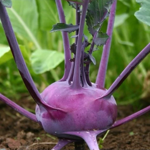 کلم قمری بنفش یکی از خاصترین اعضای خانوادهی کلمها است که برخلاف همخانوادههایش (مانند کلم بروکلی یا کلم سفید) بهجای تولید برگهای فشرده یا گلهای خوراکی، در قسمت انتهایی ساقه خود یک برجستگی کروی و گوشتی تولید میکند که بخش اصلی خوراکی گیاه است. رنگ بنفش پوست این برجستگی، زیبایی خاصی به آن داده و باعث شده در بازار سبزیجات خارجی تبدیل به محصولی لوکس شود 🌟.