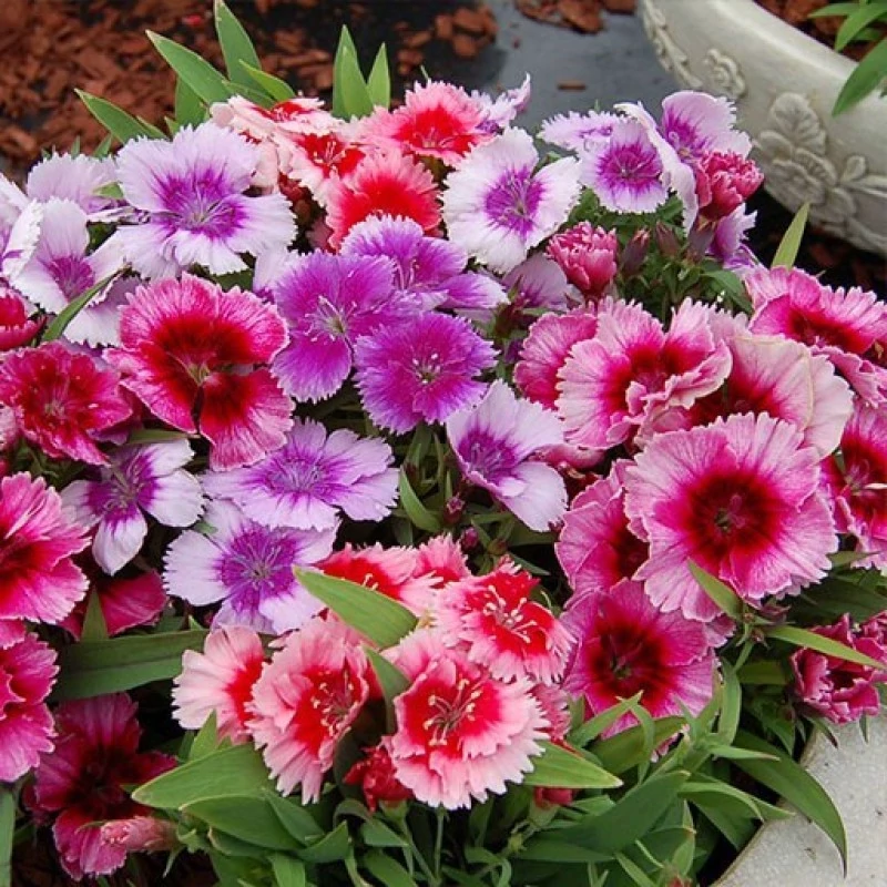 گل بوقلمون پاکوتاه الوان یا قرنفل دائمی پاکوتاه یکی از محبوب ترین گل های فضای سبز و باغچه های خانگی است که با نام های قرنفل ایرانی، قرنفل چینی و “گل بوقلمون” شناخته می شود. این گیاه جزء خانواده میخک سانان بوده و عمدتاً به عنوان یک ساله یا چندساله کوتاه عمر کشت می شود. ویژگی خاص آن، ارتفاع کم، گلدهی گسترده و رنگ های متنوع و شاداب (سفید، صورتی، سرخابی، قرمز، بنفش و الوان) در یک بستر است. گل های بوقلمون پاکوتاه به دلیل سایز مناسب، فرم بوته جمع وجور و مقاومت بالا نسبت به شرایط آب وهوایی، گزینه ایده آلی برای حاشیه کاری، گلدان و باغ صخره ای هستند. این گونه معمولاً در طول دو دوره سال یعنی بهار و تابستان گلدهی قابل توجهی دارد و به خاطر دوام خوب گل ها و برگ های چرمی، از جمله گیاهان کم توقع محسوب می شود. رایحه ملایم برخی ارقام، تنوع رنگ گلبرگ ها (حتی انواع دولبه، لکه دار یا راه راه)، و سازگاری وسیع با خاک و آب وهوای مختلف، باعث محبوبیت قرنفل دائمی در بین علاقه مندان به گل های باغچه ای شده است. مشخصات ظاهری گل بوقلمون (قرنفل دائمی) پاکوتاه الوان قرنفل دائمی پاکوتاه دارای بوته ای فشرده و کم ارتفاع با ساقه هایی باریک، منشعب و نسبتاً سخت است که معمولاً بین 15 تا 25 سانتی متر بلند می شود. برگ ها باریک، خطی تا نیزه ای و به رنگ سبز متمایل به آبی یا سبز تیره هستند. آرایش متراکم برگ ها باعث می شود بوته همیشه تازه و زیبا به نظر برسد. قطور بودن ساقه ها و انعطاف پذیری خوب آنها مانع خوابیدن گیاه، حتی پس از بارش یا باد می شود. گل ها عمدتاً در انتهای ساقه های گل دهنده قرار دارند و از نوع چترهای کوچک یا گل آرایی منفرد هستند. قطر گل ها معمولاً 2 تا 4 سانتی متر است و دارای پنج گلبرگ دندانه دار یا حاشیه دار و موج دار می باشند. رنگ گل ها بسیار متنوع است: سفید، صورتی، بنفش، قرمز، سرخابی، و گهگاه خال خالی یا حاشیه دار. برخی ارقام دارای مرکز تیره تر یا دو رنگ هستند. گل ها غالباً عطری ملایم، خوشایند و بهاری دارند و در بیشتر بوته ها، چندین گل همزمان باز بوده و چهره ای رنگارنگ و متنوع خلق می کنند.