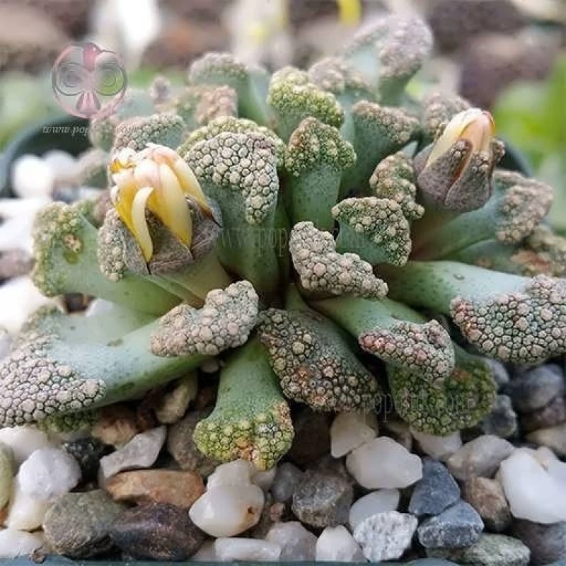 ساکولنت تیتانوپسیس کالکارایی یک ساکولنتی است که تمایل دارد بر روی زمین گسترده شود با گل های کاغذی که تا 7.5 سانتیمتر قطر دارند. برگ های گوشتی که تا 2.5 سانتیمتر طول دارند با نوک کوتاه ، معمولا به رنگ خاکستری یا آبی متمایل به سبز است و به طور گسترده ای در قسمت پایانی برگ ها با نقطه های سفید – خاکستری رنگی پوشانده است که از روی این نقطه ها گل زرد تا نارنجی رنگی تا قطر 2 سانتیمتر رشد میکند. منبع و محل زندگی این ساکولنت آفریقای جنوبی است. این ساکولنت به خوبی با محیط اطراف خود ترکیب میشود. ساکولنتها که برخی آن را ساکولنیها مینامند، نام گیاهی زیبا و زینتی است که به دلیل کشت آسانی که دارد در اکثر نقاط جهان پرورش داده میشود. از گیاهان گوشتی و آبدار میباشد. این گیاه همچون کاکتوس نیاز آبی کمی دارد و میتواند آب را در خود ذخیره کنند و به بدین صورت مدتها بدون آب به حیاط خود ادامه دهد. این گیاه در برابر سرما مقاوم است. برای رشد به خاک زهکشی شده نیاز دارد. این گیاه به تنهایی و در کنار سایر گیاهان زیبایی خاصی را به وجود میآورد.