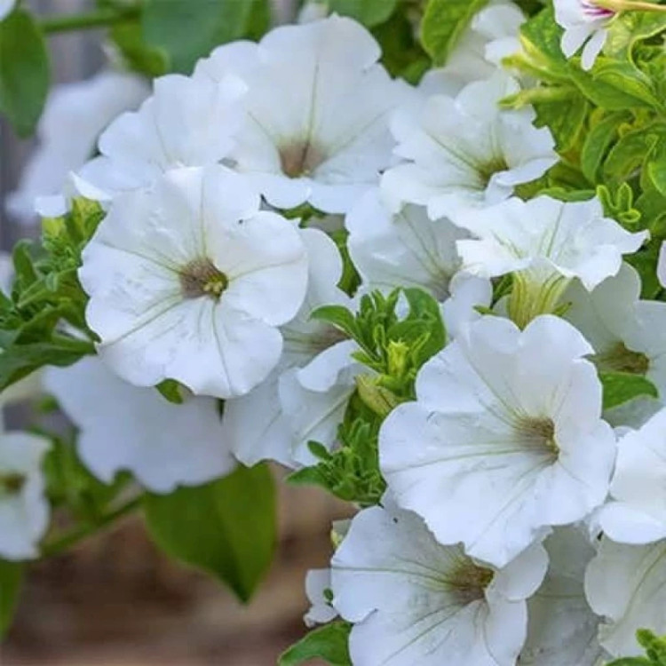 اطلسی ایرانی گل درشت پرگل تک رنگ سفید یکی از کلاسیک ترین و پُرطرفدارترین واریته های اطلسی ایرانی است که به سبب گل های بزرگ، کاملاً سفید و گلدهی متراکم، گزینه ای ویژه برای زیباسازی انواع باغچه، حاشیه، فلاورباکس، گلدان و محوطه های شهری به حساب می آید. این رقم با گل های سفید خالص، حس پاکی، آرامش و یکدستی را به محیط می بخشد و در جلوه های شبانه به خصوص زیر نور مصنوعی شکوه چشمگیری پیدا می کند. اطلسی ایرانی سفید، عملکرد بسیار بالایی در شرایط اقلیمی ایران داشته و نه تنها گلدهی ممتد از اوایل بهار تا اوایل پاییز دارد، بلکه مراقبت و پرورش آن بسیار آسان است. این واریته به دلیل قدرت رشد خوب، مقاومت بالا به گرما و آفتاب و همچنین نگهداری ساده، از پُرمصرف ترین انتخاب ها برای کاشت عمده در فضاهای سبز و باغ های خانگی است. از ویژگی های ممتاز آن مقاومت گلبرگ ها به آفتاب و باران ملایم، برگ های سالم، عطر ملایم و ظاهر لطیف و مجلل است. بذر این رقم نیز به راحتی سبز می شود و برای نشاکاری یا کشت مستقیم (در مناطق معتدل تر) کاملاً مناسب است. مشخصات ظاهری اطلسی ایرانی گل درشت پرگل تک رنگ سفید اطلسی ایرانی سفید، بافتی بوته ای و نسبتاً متراکم دارد که ارتفاع آن معمولاً 25 تا 35 سانتی متر و گسترش عرضی نزدیک به 40 سانتی متر است. ساقه ها نرم، نیمه گوشتی و پرانشعاب، با شاخه های جانبی متعدد و پوششی از کرک های لطیف و نقره ای هستند. برگ ها بیضی یا تخم مرغی، کاملاً سبز روشن و پوشیده از کرک مخملی ریز، ضخامت مناسبی داشته و در سرتاسر طول شاخه ها به صورت منظم رشد می کنند. بافت بوته، لطافت خاصی داشته و حتی با لمس دست قابل احساس است. گل ها بسیار بزرگ، قیفی شکل، پنج لَبی و با قطر نسبتاً زیاد (7 تا 9 سانتی متر) هستند. رنگ گلبرگ ها کاملاً سفید، خالص و ابریشمی است، بدون هیچ لکه یا رگه رنگی، که گاهی اوقات به صورت هاله ای از درخشندگی در تابش نور دیده می شود. لبه گلبرگ ها کمی موج دار و انتهای آن رو به بیرون باز است؛ این ویژگی موجب می شود گل در باغچه یا گلدان از فاصله دور جلوه ای واضح و یکدست داشته باشد. بوته های بالغ، معمولاً به طور همزمان تعداد زیادی گل تولید می کنند و هر گل حدود 5 تا 7 روز روی بوته پایدار می ماند. دوام مناسب، عدم ریزش زودرس و یکنواختی رنگ از شاخصه های ظاهر این اطلسی است.