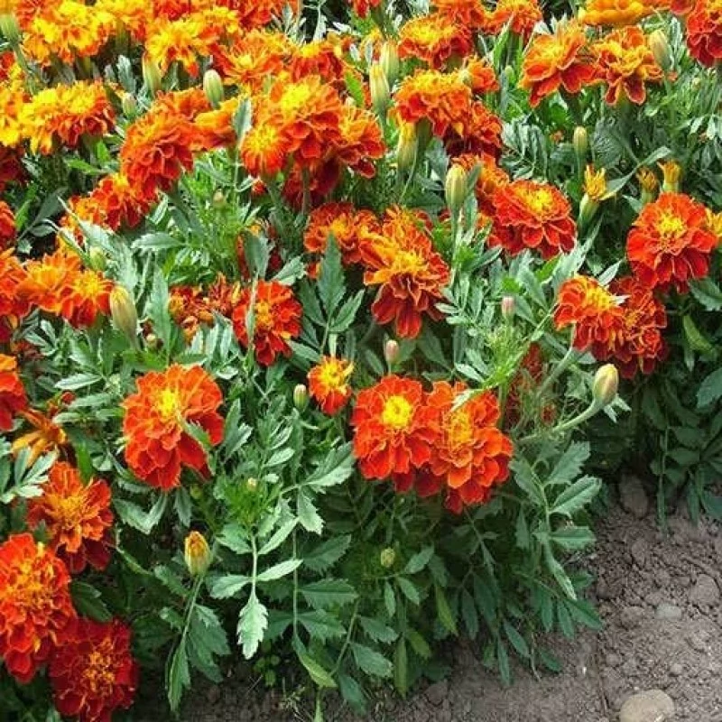 گل جعفری پامتوسط پرگل گل متوسط نارنجی (مینیاتوری) یکی از محبوب ترین ارقام جعفری فرانسوی با قامت نسبتاً کوتاه تر از جعفری آفریقایی اما بلندتر از جعفری مینیاتوری کلاسیک است. این واریته به دلیل گلدهی بسیار پربار، استمرار طولانی گل دهی، رنگ پرتقالی خالص و فرم مرتب بوته، جایگاه ویژه ای در طراحی مرزبندی ها، فلاورباکس ها، فضاهای شهری و حتی گلدان های خانگی دارد. این رقم ترکیب زیبایی از پایداری، تنوع کاربرد، و سهولت نگهداری دارد و با مقاومت خوب در برابر گرما/نور شدید، آفات و کم آبی، یک انتخاب بی دردسر برای فضاهای مختلف، حتی مناطق نسبتاً خشک، محسوب می گردد. مشخصات ظاهری گل جعفری پامتوسط پرگل گل متوسط نارنجی (مینیاتوری) ارتفاع بوته معمولاً 25 تا 40 سانتی متر و گستردگی آن 20 تا 30 سانتی متر است. بوته های این گروه نیمه فشرده، با انشعابات جانبی متعدد و ظاهری منظم، نیمه کروی تا کمی عمودی دارند. ساقه ها نسبت به جعفری مینیاتوری کشیده تر و قوی تر اما همچنان متراکم هستند و بوته شمایلی حجیم تر به خود می گیرد؛ در عین حال جثه گیاه برای استفاده در مرزهای حاشیه ای، سبدهای آویز و فلاورباکس شهری بسیار مناسب است. این فرم رشد باعث می شود بوته ها هم از دور و هم از نزدیک نمایان و چشمگیر باشند و برای ترکیب با گیاهان کوتاه تر یا به عنوان عنصر مرکزی در باغچه های کوچک ایده آل هستند.برگ ها سرخسی شکل، باریک، عمیقاً دندانه دار با رنگ سبز تیره یا متوسط و سطحی نسبتاً براق هستند. برگ ها منظم و پرتراکم روی شاخه ها قرار می گیرند و با لطافت خاص خود پس زمینه مناسبی برای برجسته شدن رنگ نارنجی گل ها فراهم می کنند. در اثر مالش، رایحه مشخص و ملایمی از برگ ها منتشر می شود که برای دفع برخی آفات باغچه نیز مفید است.گل ها معمولاً متوسط و به قطر 3 تا 5 سانتی متر هستند (بزرگ تر از مینیاتوری، کوچک تر از آفریقایی). آرایش آن ها یا نیمه پرپر یا پرپر است و ساختار آن ها چندلایه، منظم و متقارن می باشد.رنگ گل ها پرتقالی روشن و کاملاً یکنواخت، گاهی با مرکز کمی تیره یا خطوط ظریف زرد یا ماهگونی، ولی عمدتاً همان تناژ خالص و گرم دیده می شود. هر ساقه گل، یک یا چند گل را به شکل یک خوشه کوچک در بالای بوته نمایش می دهد.تراکم گل ها بر روی بوته بسیار بالاست و معمولاً سطح بوته را از اوایل تابستان تا اواخر پاییز پوشش می دهد.این واریته از شروع تابستان تا اواخر پاییز، پیوسته و پربار گل می دهد و با حذف منظم گل های پژمرده، بوته تا سرد شدن هوا و نخستین سرماها همچنان نمایی تازه و شاداب دارد. مقاومت نسبتاً بالا به گرما، آفتاب، کم آبی و حتی خاک های کمی فقیر، از ویژگی های بارز این گروه است.
