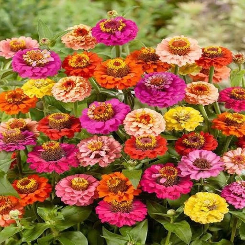 گل رعنا زیبا پامتوسط پرگل الوان از جمله ارقام شناخته شده زینیای یک ساله (Zinnia elegans Medium Mixed) است که به دلیل قابلیت گل دهی بسیار بالا، تنوع رنگ جذاب و مقاومت خوب به گرما و خشکی، جایگاه ویژه ای در فضای سبز شهری، باغ ها، باغچه ها و حتی گلدان های متوسط دارد. این واریته با ارتفاعی بین 30 تا 50 سانتیمتر به عنوان گل مرزی، شاخه گل بریده و کاشت ترکیبی با سایر گیاهان بسیار محبوب است. این گونه عمدتاً از مکزیک منشأ گرفته و به سرعت در سراسر جهان به عنوان یکی از مقاوم ترین گل های مناسب اقلیم گرم و معتدل شناخته شد. گل رعنا پامتوسط علاوه بر داشتن گل های پرپتالی و درخشان، در تمام طول تابستان تا پاییز به گل می نشیند و با جذب حشرات گرده افشان همچون زنبور و پروانه به افزایش تنوع زیستی محیط کمک می کند. گل های این گیاه گزینه ای مناسب برای گل آرایی، دسته گل و حتی فضاهای نیم سایه هستند، چرا که ترکیب بوته ای منظم با گلبرگ های متراکم و تنوع رنگی، جلوه ای پویا به منظر باغ می بخشد. همچنین به دلیل سازگاری با خاک های ضعیف تر و تحمل نسبی در برابر کم آبی، گزینه ای عالی برای نقاطی است که با آبیاری محدود مواجه هستند. مشخصات ظاهری گل رعنا زیبا پامتوسط پرگل الوان بوته این گیاه رشد قائم و نسبتاً انبوهی دارد و معمولاً ارتفاع آن به 30 تا 50 سانتیمتر و قطرش به حدود 25 تا 35 سانتیمتر می رسد. ساقه ها ضخیم، منشعب و پوشیده از کرک های ریز هستند که موجب ایستایی بیشتر و مقاومت در برابر وزش باد می شود. این ویژگی باعث می شود بوته های این رقم برای کاشت گروهی یا ردیفی یکدست و مرتب جلوه کنند. برگ های گل رعنا زیبا پامتوسط، بیضی تا نیزه ای شکل، سبز تیره و نسبتاً ضخیم اند؛ به صورت متقابل روی ساقه قرار می گیرند و با بافت کمی زبر، مقاومت خوبی در برابر تبخیر و گرمای زیاد از خود نشان می دهند. ریشه های این گیاه سطحی و گسترده هستند و سدی برای فرسایش خاک ایجاد می کنند. گل ها، اصلی ترین وجه تمایز این رقم هستند؛ عموماً قطر هر گل بین 5 تا 8 سانتیمتر است و در رأس ساقه ها بیرون می آید. گلبرگ ها در چندین ردیف، پرپتالی و گاهی مجعد دیده می شوند و گسترده ترین طیف رنگی را دارند: سفید، زرد، قرمز، صورتی، نارنجی، بنفش، و ترکیبات دو رنگ یا سه رنگ. مرکز گل معمولاً به رنگ طلایی، زرد یا قرمز است و به دلیل تراکم گل ها، این رقم از زینیا به “پُرگل” شهرت یافته است.