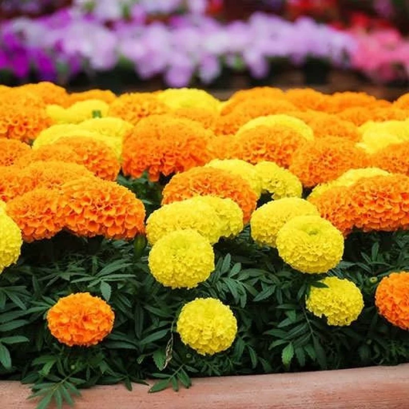 گل جعفری پامتوسط پرپر گل درشت مخلوط زرد و نارنجی یکی از جذاب ترین واریته های جعفری یک ساله است که در باغبانی شهری، محوطه سازی، مرزبندی باغچه و فلاورباکس های خانگی طرفداران زیادی دارد. این گروه ترکیبی دلپذیر از گل های پرپر بزرگ به رنگ های زرد طلایی، زرد لیمویی، نارنجی گرم و گاهی ترکیب های بین این دو را ارائه می کند. این واریته نه تنها به علت ابعاد گل ها و تضاد رنگی چشمگیرش مورد توجه است، بلکه به دلیل دوام نسبتاً بالا، سهولت کاشت و نگهداری، مقاومت به گرما، آفتاب قوی و حتی کم آبی جزو گزینه های سرآمد برای فضاهای شهری و روستایی است. ظاهر منظم، گلدهی ممتد و کاربرد آسان، آن را برای ترکیب با سایر گیاهان تابستانه و حتی طراحی باغچه های مسکونی و فضاهای عمومی ایده آل ساخته است. مشخصات ظاهری گل جعفری پامتوسط پرپر گل درشت مخلوط زرد و نارنجی بوته ها ارتفاعی در حدود 30 تا 50 سانتی متر و قطر یا گسترشی 25 تا 35 سانتی متر دارند. گیاهان رشد نیمه فشرده، راست قامت و دارای شاخه های جانبی متعدد هستند که سبب می شود هر بوته کل فضای اختصاص یافته را به خوبی پر کند.فرم گیاه نیمه کروی تا کمی عمودی است؛ این ساختار علاوه بر زیبایی، سبب مقاومت بیشتر در برابر وزش باد و باران می شود.ساقه ها قوی، سبز روشن تا متوسط و نسبتاً منشعب هستند. برگ های جعفری پامتوسط پرپر، سرخسی شکل، باریک، عمیقاً بریده، سبز متوسط تا تیره و نیمه براق اند و تراکم بالایی در فضای بوته ایجاد می کنند. برگ ها عطر ملایم مخصوص جعفری را دارند که با لمس آزاد می شود و به دفع بعضی حشرات کمک می کند.