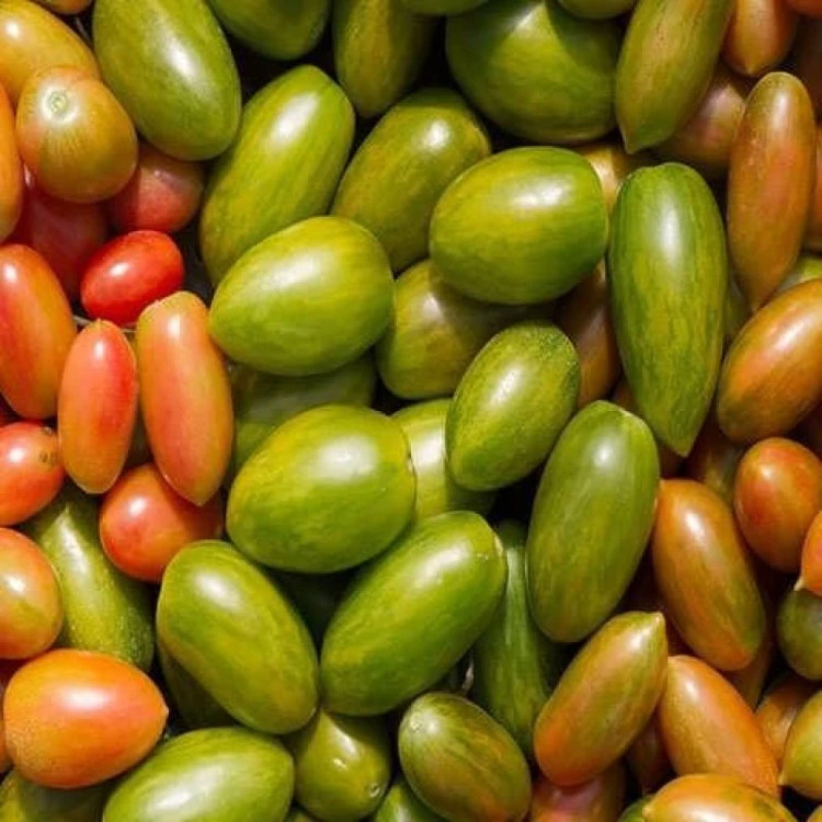 گوجه زیتونی ببری میکس (Mixed Tiger Plum Tomato) از جذاب ترین و رنگارنگ ترین ارقام گوجه فرنگی است که در سال های اخیر به دلیل ظاهر منحصربه فرد و طعم فوق العاده، توجه بسیاری از باغبانان و مصرف کنندگان را جلب کرده است. این گوجه مجموعه ای از واریته های زیتونی شکل و نسبتاً کشیده با رنگ های متنوع و رگه های متفاوت را شامل می شود که میوه ها در یک بوته یا بسته بندی، ترکیبی از رنگ های زرد، قرمز، نارنجی، سبز و حتی ارغوانی با خطوط یا خال های روشن و تیره را در بر می گیرند. این تنوع رنگ باعث شده که هم برای زینت سالاد و سفره و هم برای بازارهای نوآور و صادراتی، محبوبیت بالایی داشته باشد. گوجه زیتونی ببری میکس علاوه بر ظاهر تزیینی، مزه ای شیرین، کمی اسیدی اما بسیار خوشایند و آبدار دارد. هر میوه، تجربه ای جدید از لحاظ بافت، طعم و رنگ ارائه می دهد و به همین دلیل برای مصرف تازه، دیزاین غذا، تزیین بشقاب ها، کترینگ و سالادهای خاص کاربرد فراوان پیدا کرده است. مقاومت مطلوب نسبت به برخی بیماری های رایج و عملکرد خوب در گلخانه و فضای آزاد، این واریته میکس را به انتخابی عالی برای گلخانه داران و باغچه های خانگی بدل نموده است. مشخصات ظاهری گوجه زیتونی ببری میکس بوته گوجه زیتونی ببری میکس اغلب از نوع رشد نامحدود (ایندترمینیت) بوده و به ارتفاع 1.5 تا 2 متر می رسد. شاخه ها بلند، منعطف و با برگ هایی متوسط و کشیده ازدحام مناسبی روی گیاه ایجاد می کنند. هر بوته خوشه های بلند با تعداد زیادی میوه زیتونی آویز دارد. وجود میوه های با رنگ های مختلف در یک خوشه جلوه ای خیلی خاص به گیاه می بخشد و باعث می شود که حتی در مرحله رشد نیز بوته زیبا و تزیینی باشد. میوه ها بیضوی، کشیده و کوچک هستند و قطر حدود 2 تا 3 سانتی متر و طول 4 تا 5 سانتی متر دارند. رنگ ها متنوع و میکس، از زرد پرتقالی تا قرمز خونی، نارنجی، ارغوانی تا سبز زیتونی و حتی مشکی دیده می شود که بر روی هر میوه خطوط یا لکه هایی روشن تر یا تیره تر (“ببری” یا “tigered pattern”) وجود دارد. پوست میوه نازک اما مقاوم و گوشت داخلی آبدار و دانه نسبتاً کم است. این میوه ها هنگام رسیدن کامل کمی براق تر و خوش رنگ تر می شوند و حتی پس از برداشت نیز قابل نگهداری خوبی دارند.