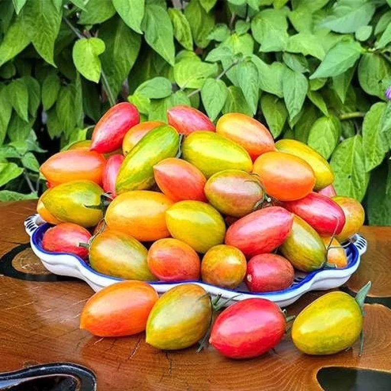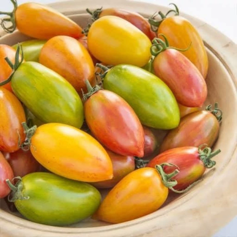 گوجه زیتونی ببری میکس (Mixed Tiger Plum Tomato) از جذاب ترین و رنگارنگ ترین ارقام گوجه فرنگی است که در سال های اخیر به دلیل ظاهر منحصربه فرد و طعم فوق العاده، توجه بسیاری از باغبانان و مصرف کنندگان را جلب کرده است. این گوجه مجموعه ای از واریته های زیتونی شکل و نسبتاً کشیده با رنگ های متنوع و رگه های متفاوت را شامل می شود که میوه ها در یک بوته یا بسته بندی، ترکیبی از رنگ های زرد، قرمز، نارنجی، سبز و حتی ارغوانی با خطوط یا خال های روشن و تیره را در بر می گیرند. این تنوع رنگ باعث شده که هم برای زینت سالاد و سفره و هم برای بازارهای نوآور و صادراتی، محبوبیت بالایی داشته باشد. گوجه زیتونی ببری میکس علاوه بر ظاهر تزیینی، مزه ای شیرین، کمی اسیدی اما بسیار خوشایند و آبدار دارد. هر میوه، تجربه ای جدید از لحاظ بافت، طعم و رنگ ارائه می دهد و به همین دلیل برای مصرف تازه، دیزاین غذا، تزیین بشقاب ها، کترینگ و سالادهای خاص کاربرد فراوان پیدا کرده است. مقاومت مطلوب نسبت به برخی بیماری های رایج و عملکرد خوب در گلخانه و فضای آزاد، این واریته میکس را به انتخابی عالی برای گلخانه داران و باغچه های خانگی بدل نموده است. مشخصات ظاهری گوجه زیتونی ببری میکس بوته گوجه زیتونی ببری میکس اغلب از نوع رشد نامحدود (ایندترمینیت) بوده و به ارتفاع 1.5 تا 2 متر می رسد. شاخه ها بلند، منعطف و با برگ هایی متوسط و کشیده ازدحام مناسبی روی گیاه ایجاد می کنند. هر بوته خوشه های بلند با تعداد زیادی میوه زیتونی آویز دارد. وجود میوه های با رنگ های مختلف در یک خوشه جلوه ای خیلی خاص به گیاه می بخشد و باعث می شود که حتی در مرحله رشد نیز بوته زیبا و تزیینی باشد. میوه ها بیضوی، کشیده و کوچک هستند و قطر حدود 2 تا 3 سانتی متر و طول 4 تا 5 سانتی متر دارند. رنگ ها متنوع و میکس، از زرد پرتقالی تا قرمز خونی، نارنجی، ارغوانی تا سبز زیتونی و حتی مشکی دیده می شود که بر روی هر میوه خطوط یا لکه هایی روشن تر یا تیره تر (“ببری” یا “tigered pattern”) وجود دارد. پوست میوه نازک اما مقاوم و گوشت داخلی آبدار و دانه نسبتاً کم است. این میوه ها هنگام رسیدن کامل کمی براق تر و خوش رنگ تر می شوند و حتی پس از برداشت نیز قابل نگهداری خوبی دارند.