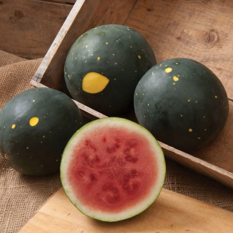 ظاهر این هندوانه شبیه یک اثر هنری طبیعی است. پوست سبز تیرهاش مثل آسمان شب است، لکه زرد بزرگ بهعنوان ماه کامل و لکههای کوچکتر بهعنوان ستارگان پراکنده، منظرهای شگفتانگیز میسازند. وقتی این هندوانه را وسط جمع خانواده یا مهمانی ببرید، قبل از اینکه کسی به سراغ برش زدن برود، همه اول موبایلشان را برای عکس گرفتن آماده میکنند! 📸