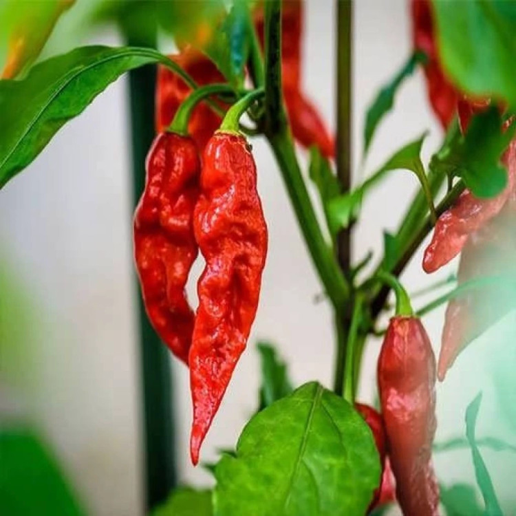 فلفل چروک قرمز با نام علمی Bhut Jolokia و نام متداول Red Ghost Pepper، یکی از معروف ترین فلفل های فوق العاده تند جهان است که اصالت آن به بخش هایی از هند شمال شرقی به خصوص ایالت آسام و ناگالند باز می گردد. این فلفل تا مدتی رکورد تندترین فلفل جهان را (در کتاب رکوردهای گینس 2007) در اختیار داشت و تندی آن معمولا بین 800٬000 تا 1٬041٬427 واحد اسکویل (SHU) است! این شدت تندی باعث شده که مصرف آن فقط به مقادیر خیلی کم در آشپزی، سس های ویژه و همچنین در صنایع نظامی (اسپری دفاعی) محدود شود. Ghost Pepper علاوه بر تندی شدید، دارای عطر میوه ای و خاکی خاصی است و در کشورهای هند و شرق آسیا، برای طعم دهی و عطر غذا یا خشک شده و پودرشده مصرف می شود. این فلفل علاوه بر قدرت تندی بالا، با ارزش غذایی خوب (ویتامین C بالا و آنتی اکسیدان ها) و نقش فرهنگی-محلی، برای کلکسیونرهای گیاهی، علاقه مندان فلفل های خاص و کشاورزان حرفه ای بسیار جذاب است. رشد آن در آب و هوای گرم و مرطوب بهترین نتیجه را می دهد و گیاه در برابر اکثر آفات و بیماری ها نسبتا مقاوم است. مشخصات ظاهری فلفل چروک قرمز میوه های این فلفل اغلب به شکل کشیده یا نیمه بیضی هستند و طول آن ها حدود 5 تا 8 سانتی متر و قطرشان 2 تا 3 سانتی متر است. بارزترین ویژگی ظاهری این فلفل، سطح پوسته ی کاملاً چروک، ناهموار و شیارهای ریز و درشت است که به آن بافتی زبر و مواج داده است. رنگ میوه در حالت نارس سبز تیره است، اما با رسیدن کامل، به قرمز روشن و براق تغییر می یابد. پوست فلفل نازک و گوشت آن نسبتاً نازک و خشک است و وزن میوه ها نسبت به اندازه شان سبک محسوب می شود. دانه های فلفل چروک قرمز، کوچک و به رنگ زرد کم رنگ تا سفید هستند و در مرکز میوه جای می گیرند. انتهای میوه اغلب به حالت کمی پیچ خورده یا مچاله دیده می شود و بخش فوقانی میوه گاهی شانه دار یا موجدار به نظر می رسد. برگ های گیاه سبز تیره و براق، بیضی شکل و نسبتاً پهن هستند. بوی تند و میوه ای فلفل چروک قرمز حتی پیش از چشیدن آن احساس می شود و ظاهر سطحی چروکیده و رنگ قرمز درخشانش، آن را از نظر زینتی نیز برای برخی علاقمندان گیاهان خاص جذاب کرده است.