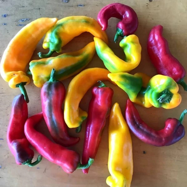فلفل دلمهای میکس ایتالیایی که با نام محبوب “فلفل کبابی” شناخته میشود، یک مجموعه شگفتانگیز و رنگارنگ از بهترین واریتههای فلفل دلمهای ایتالیایی است که باغ و سفره شما را به یک جشنواره واقعی از رنگها و طعمها تبدیل میکند. این مجموعه معمولاً شامل فلفلهایی به رنگهای قرمز، زرد، نارنجی و گاهی حتی رنگهای خاصتر مانند شکلاتی یا بنفش است که همگی دارای شکل کشیده، باریک و کمی قوسی مخصوص فلفلهای ایتالیایی هستند. هر یک از این رنگها نه تنها زیبایی چشمگیری ایجاد میکنند، بلکه هر کدام طعم و عطر منحصر به فرد خود را دارند. فلفلهای قرمز معمولاً شیرینترین و رسیدهترین طعم را دارند، فلفلهای زرد طعمی ملایم و میوهای ارائه میدهند و فلفلهای نارنجی بین این دو قرار میگیرند. برخلاف فلفلهای تند، همه این انواع کاملاً شیرین و فاقد هرگونه تندی هستند و برای همه افراد از جمله کودکان و کسانی که به طعمهای تند حساسیت دارند، کاملاً مناسب میباشند. پوست همه این فلفلها نازک، صاف و براق است و وقتی کاملاً میرسند به رنگ نهایی و یکنواخت خود درمیآیند. گوشت داخلی آنها ضخیم، آبدار، ترد و فوقالعاده معطر است. این مجموعه رنگارنگ نه تنها از نظر ظاهری جذاب است، بلکه از نظر ارزش غذایی نیز بسیار غنی میباشد. فلفلهای رنگی سرشار از ویتامین ث (حتی بیشتر از پرتقال)، ویتامین آ، ویتامین ب6، فولات، فیبر و آنتیاکسیدانهای قوی هستند که هر رنگ آنتیاکسیدانهای خاص خود را دارد. گیاهان این مجموعه معمولاً بوتهای فشرده و پرپشت هستند که ارتفاع آنها بین 45 تا 60 سانتیمتر میرسد و برگهای سبز تیره و براقی دارند. پرورش این مجموعه رنگارنگ در باغ یا گلدان، تجربهای لذتبخش و زیبا برای هر باغبان ایجاد میکند.