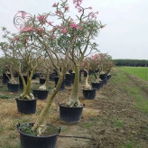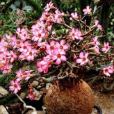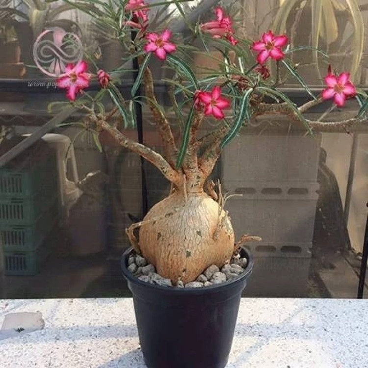 آدنیوم سومالنس یا رز صحرا گونه ای گیاه است که معمولاً برای بونسای مورد استفاده قرار می گیرد و برای برگ، فرم رشد و ویژگی های گلدهی آن کاشت می شود. شباهت های ظاهری زیادی به انواع خرزهره دارد اما از لحاظ گیاه شناسی به ارکیده نیز شباهت دارد. آدنیوم سومالنس به طور کلی در باغهای گرمسیری مرطوب رشد نمی کند اما اغلب به عنوان گیاه گلدان تزئینی دیده می شود. همچنین ممکن است در باغ های سنگی مورد استفاده قرار گیرد. مشخصات ظاهری آدنیوم سومالنس: تنه آدنیوم سومالنس متورم و اغلب پیچ خورده و به رنگ خاکستری کم رنگ یا بنفش تا قهوه ای تیره است. آدنیوم سومالنس دارای گلهایی با گلبرگهای چهارپایه و به رنگ سفید یا صورتی مایل به قرمز که تقریباً به طور مداوم ظاهر می شوند و به شکل ترومپت هستند. برگها گسترده، براق، کلوخه ای شکل، بزرگ و تا حدودی چرمی هستند و بدون تفاوت زیاد بین تنه و شاخه ها است. شرایط اقلیمی آدنیوم سومالنس: آدنیوم سومالنس به آفتاب کامل و یک خاک خوب با زهکشی مناسب نیاز دارد. همجنین آب بیش از حد و از سویی دیگر خشک شدن را دوست ندارند. آدنیوم برای گلدهی سنگین به نور زیادی احتیاج دارد. آدنیوم سومالنس هنگامی که شرایط گرم است و روزها طولانی تر می شوند، شکوفه می گیرند و به شکوفا شدن آب و هوا در آب و هوای گرم ادامه می دهند. ترجیحاً در صبح زود گیاه را آبیاری کنید. برای اینکه گیاه شما یک ریشه با تنه بزرگ متورم ایجاد کند، به یک کود با کیفیت خوب نیاز دارید. هرگز کود را به طور مستقیم روی ریشه ها نمالید و و هنگامی که یک تشنه است، از تغذیه آن با کود مایع خودداری کنید.